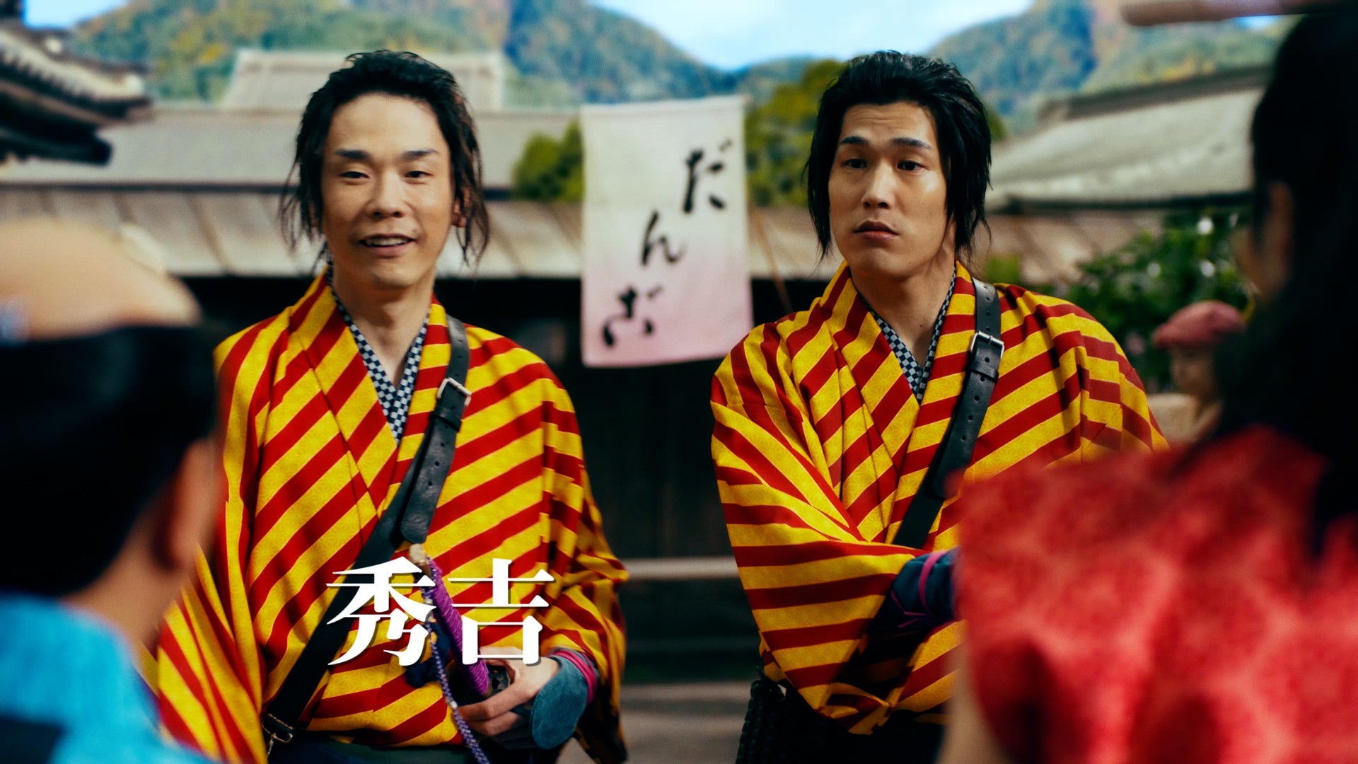「秀吉じゃない!?誰?」と尋ねると、横から本物の秀吉が登場し、「驚いた?天下とるなら影武者のひとりぐらいおらんとな。」とドヤ顔で答えます。