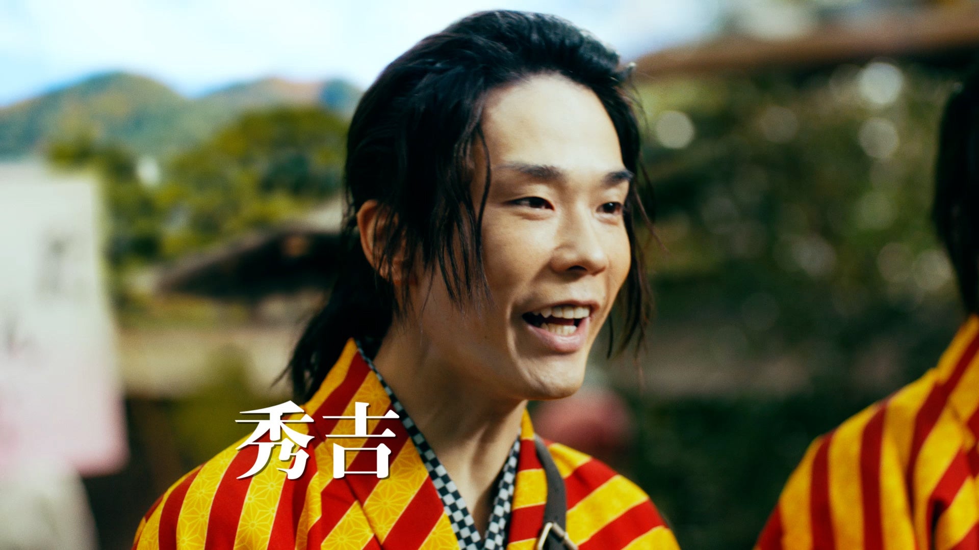 背中を向けて座る秀吉らしき人物に、信長が「お!秀吉ー!」と声をかけると全く別の人物が振り返ります。