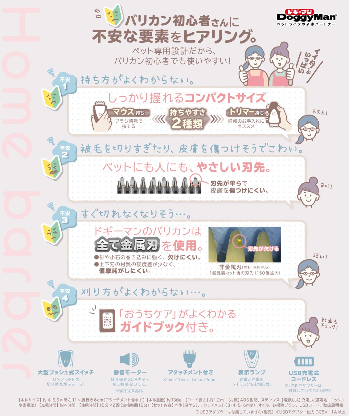 - 「ホームバーバー ペットに使いやすい回転バリカン」商品特徴
