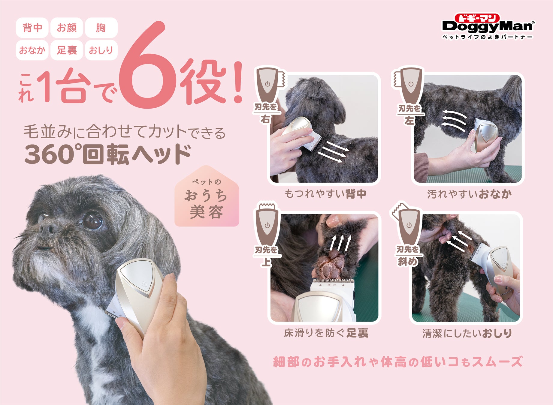 「360°回転ヘッド」搭載!どの向きでも楽にカットできるペット用バリカンが新登場!