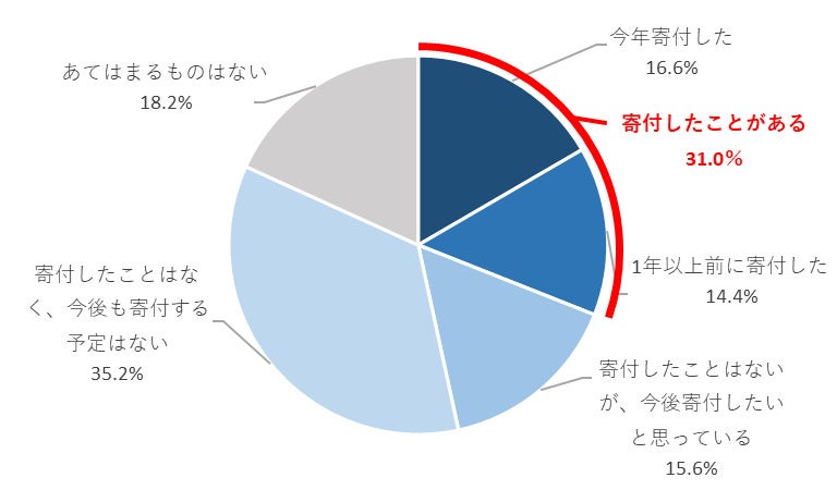 災害支援のために「寄付をしたことがある」人は31.0%に