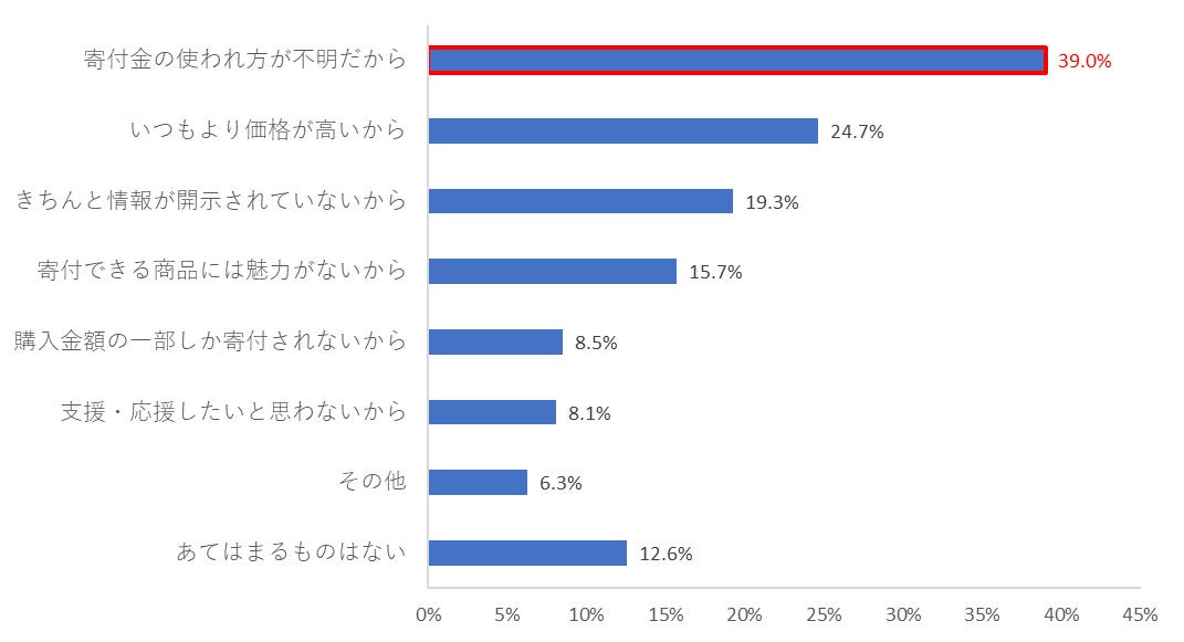 ●寄付できる商品を購入しない理由は「寄付金の使われ方が不明」がトップ