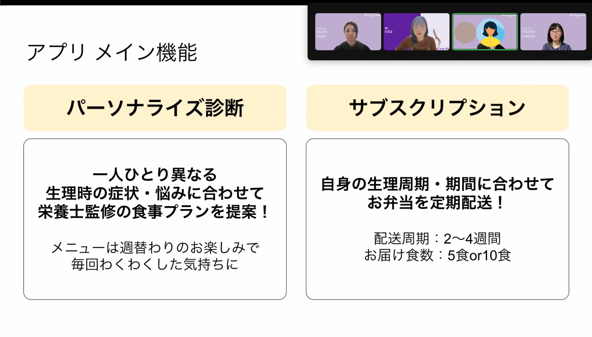 プレゼン1「生理周期に合わせたお弁当配送サービス「femeats(フェミーツ)