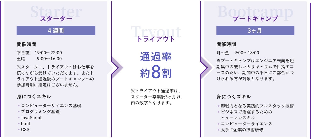 Ms.Engineerは、「スターターコース」を修了したのち、トライアウトを通過した人だけが「ブートキャンプ」プログラムに進むことができます。
