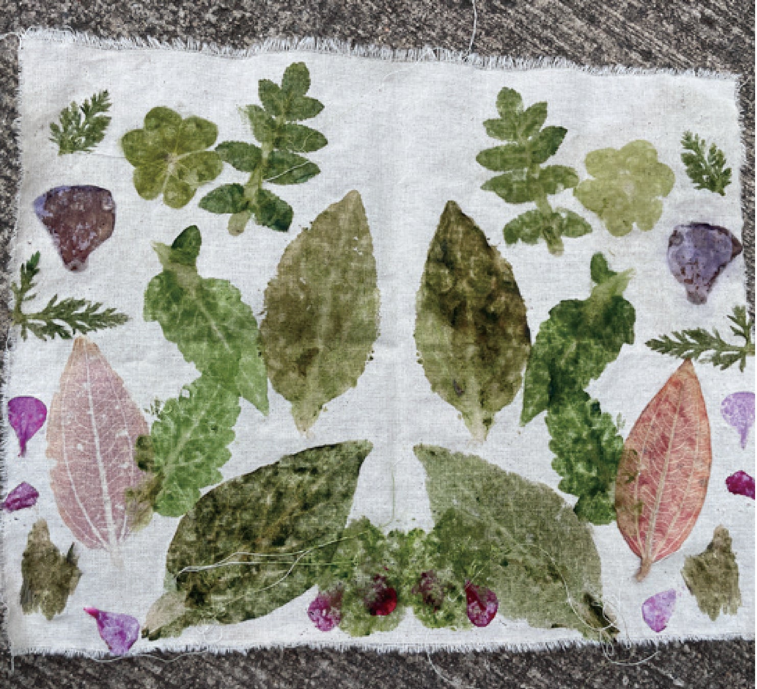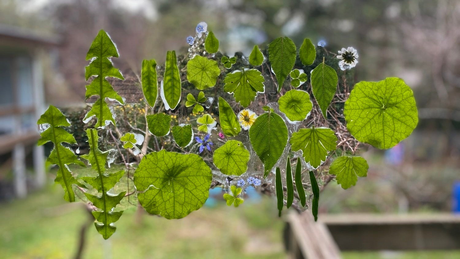 自分たちの足元に広がる自然を感じながら、暮らしのなかでアートとつながるワークショップ。会場の大きなガラスに、スローアートセンター名古屋周辺で見つけた植物を貼り付け、オリジナルの庭を作ります。