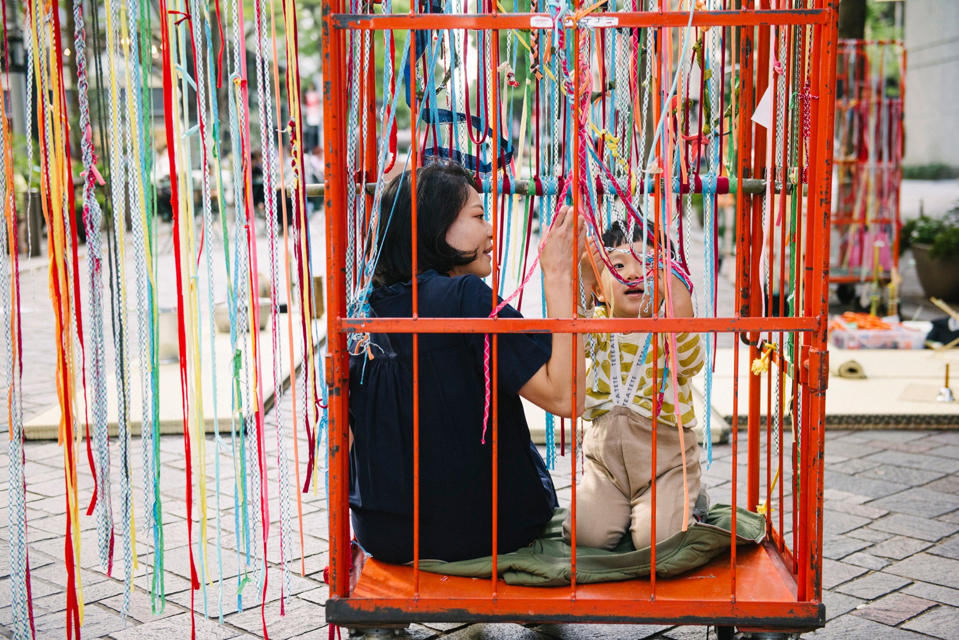 施設内には、身の回りの素材や植物をつかって、小さな子どもからお年寄りまで自由に創作し、遊べるスペースを開設します。竹製の大きな星形の 基地のなかで、好きな場所にカラフルな紐を結んだり、編みこんだりするワークショップや、草花を使った「たたき染め」、道端に生えている植物を窓に貼っての「窓庭」作りなど、もりだくさんのワークショップを予定しています。ゆったりと日常の素材との対話 を楽しみながら、新しいなにかを作り出す、新鮮な体験をご堪能ください。