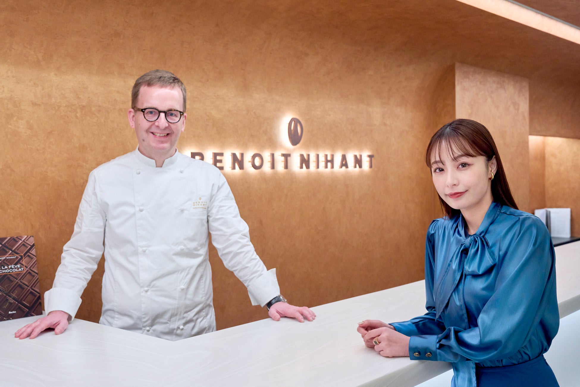 発売に先行し、大のチョコレート好きで「ブノワ・ニアン 銀座」のお客様第1号である宇垣美里さんを招いて試食会を行い、ベルギーから来日したブノワ・ニアン氏が、新商品の説明や開発秘話を披露しました。