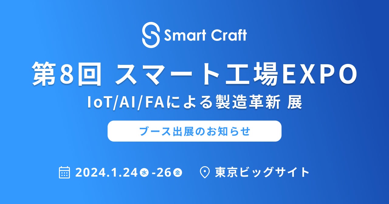 株式会社Smart Craft(本社:東京都渋谷区、代表取締役 浮部史也、以下Smart Craft)は、2024年1月24日(水)〜1月26日(金)に東京ビックサイトで開催される「第8回スマート工場EXPO IoT/AI/FAによる 製造革新 展」に出展します。