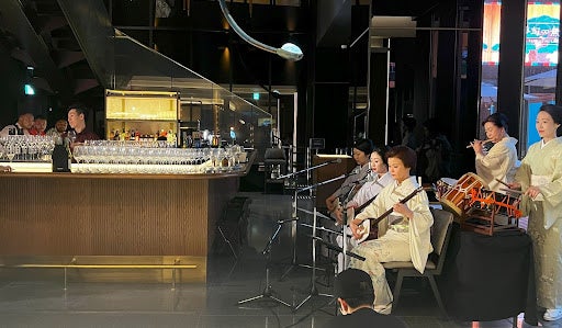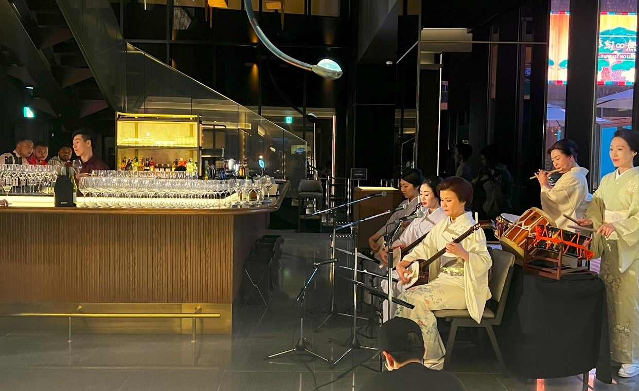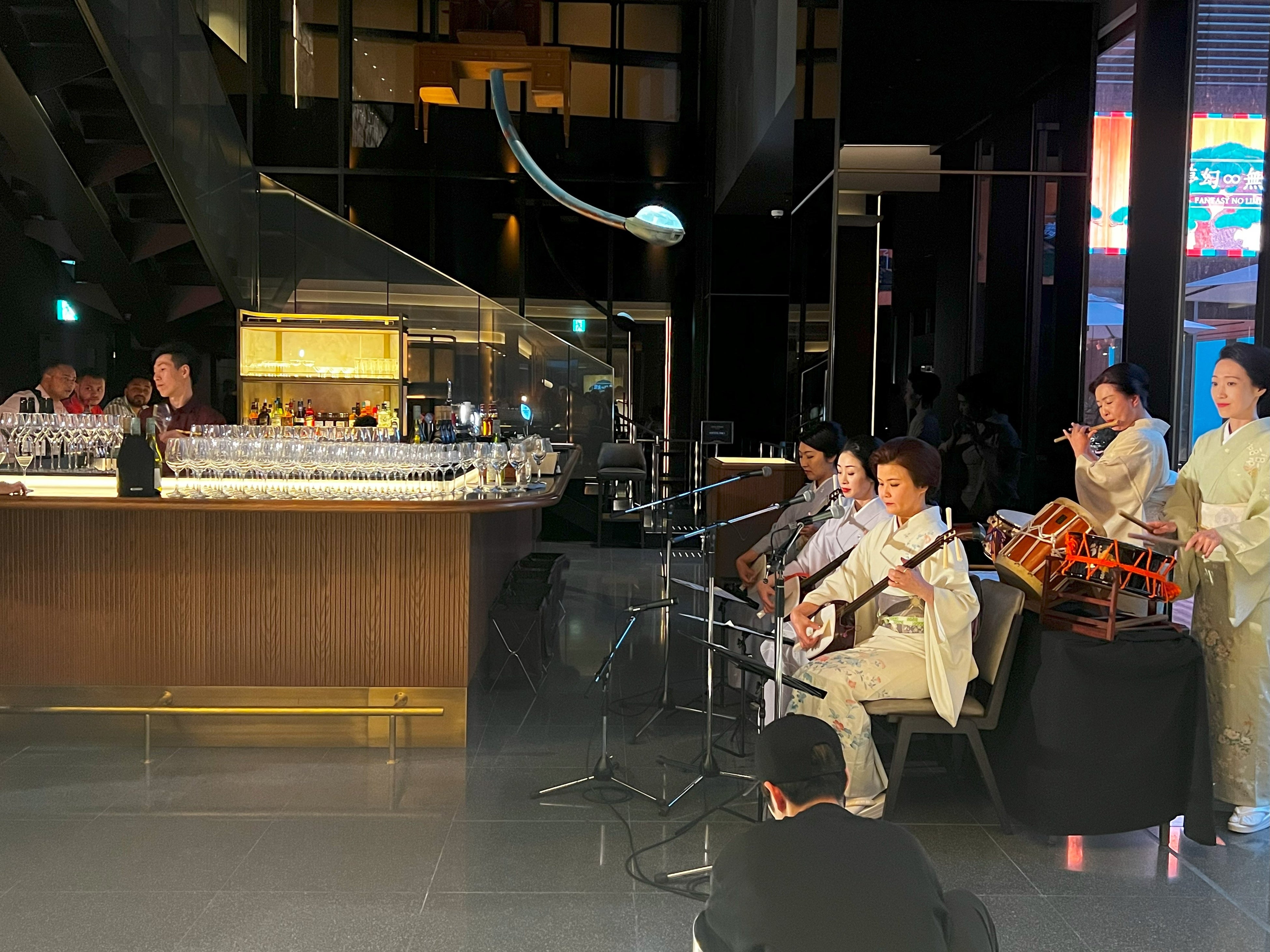 日本を代表する文化的なパフォーマンスや産地直送の食材を使った料理とともに、会場を訪れたお客様にスパークリング日本酒『珀彗』が振る舞われました。