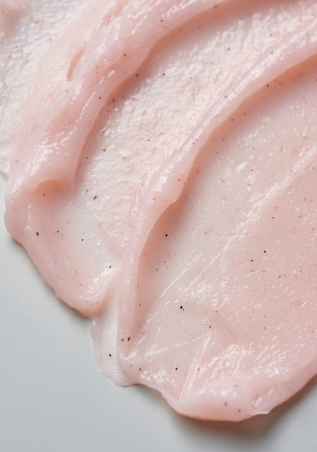 敏感肌のための低刺激・高保湿スクラブでより細かい角質除去とつっぱり感のないしっとりした使用感にするために、3サイズのスクロース(シュガー)を処方。