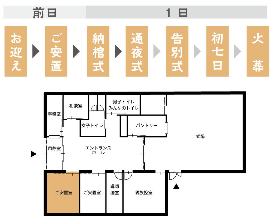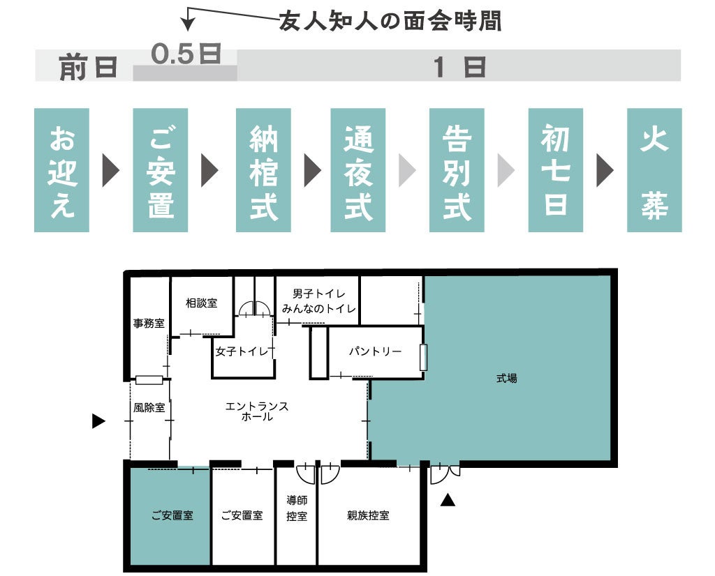 □お別れ式:セレモニーを行わず、火葬中心のお見送り。個室のご安置室からお見送りします。