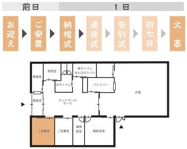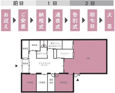 その方らしさを演出できる式場、プライベートが守られる個室タイプの親族控室、お別れ式まで執り行えるご安置室など、機能性とおもてなしを兼ね備えた家族葬式場です。
