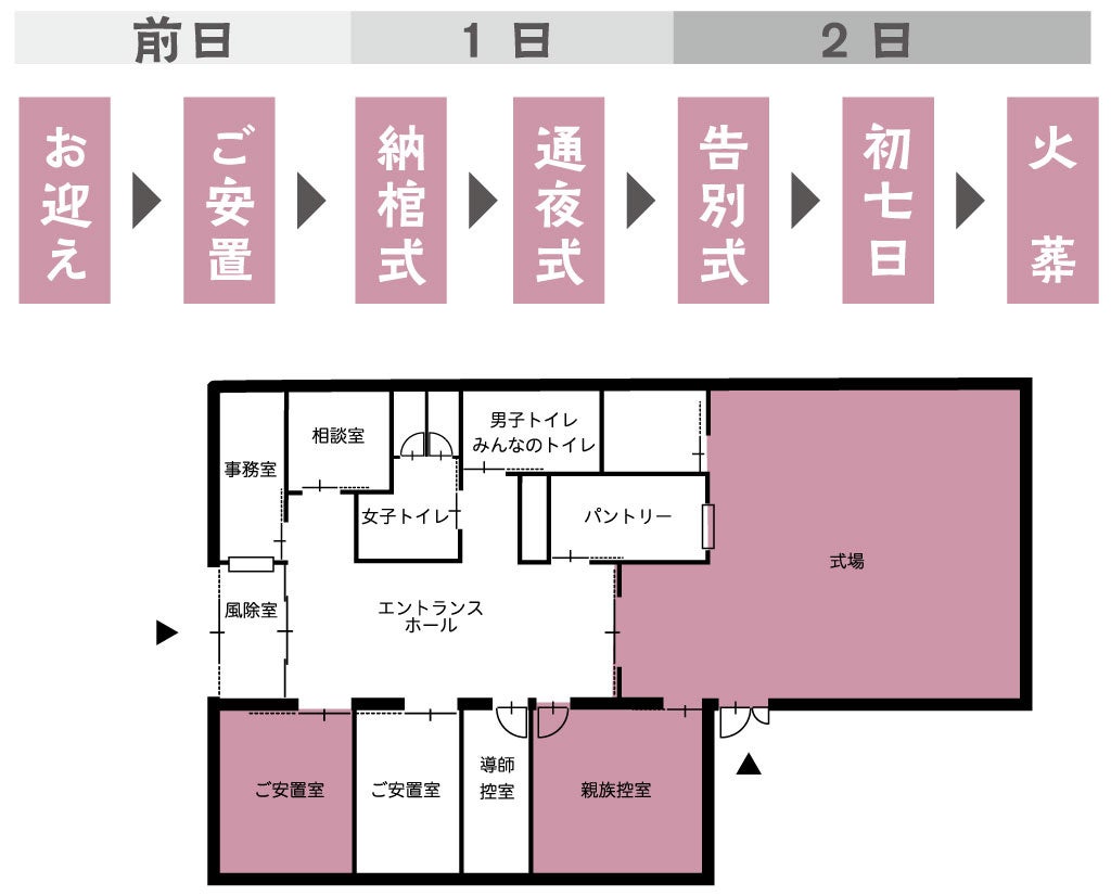 その他設備:ご相談室(個室)、バリアフリートイレ・パウダールーム、親族控室、導師控室