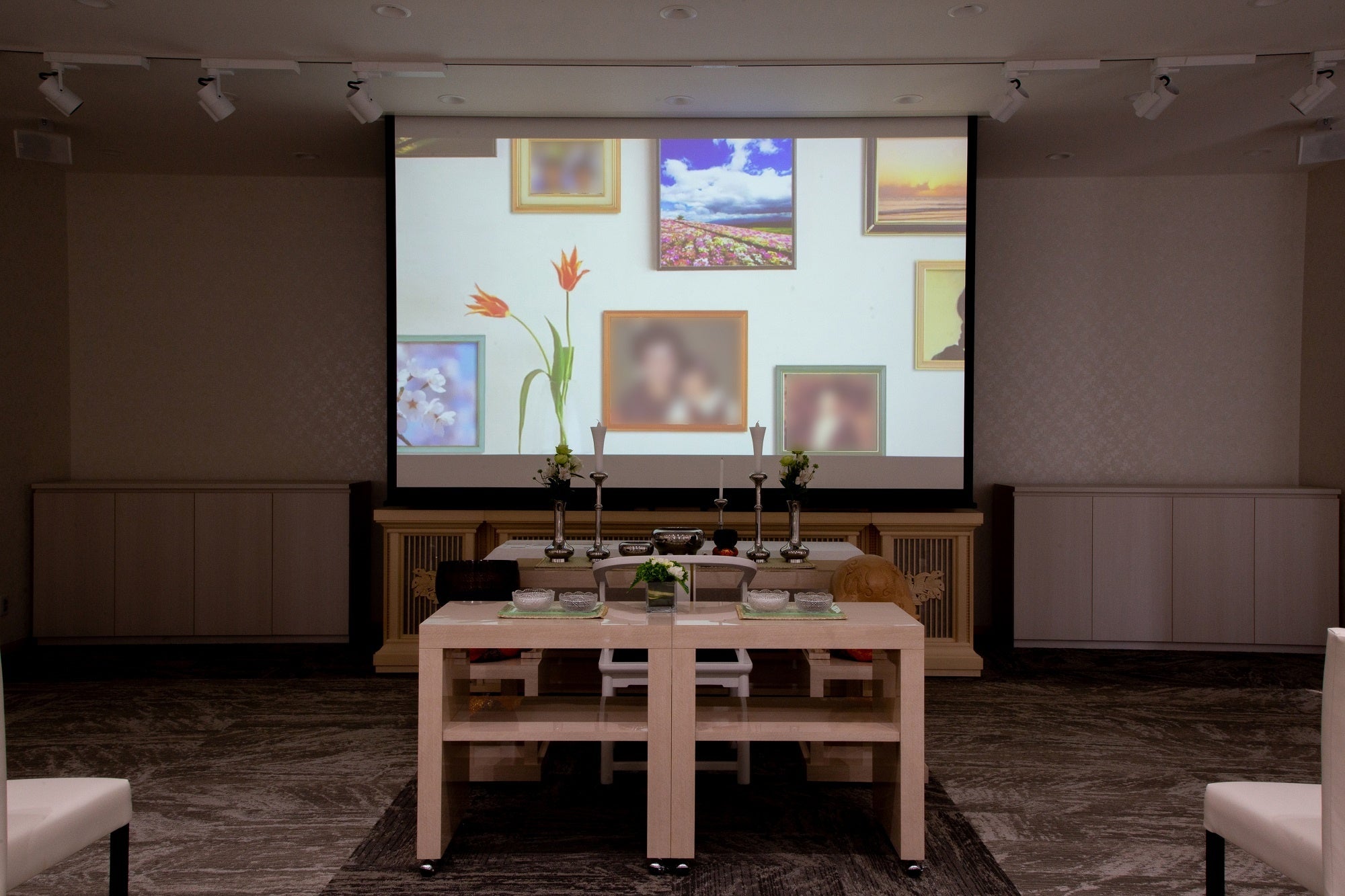生前のご様子をスライドショーでご覧いただき、故人さまの在りし日を振り返っていただくことができます。