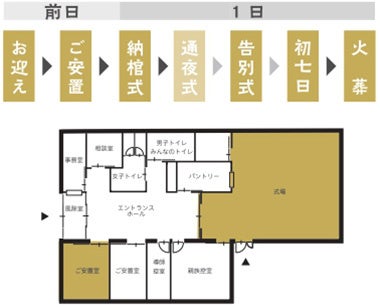 式の前後にお休みいただけるほか、故人さまの思い出を語らう団らんの時間をお過ごしいただけます。