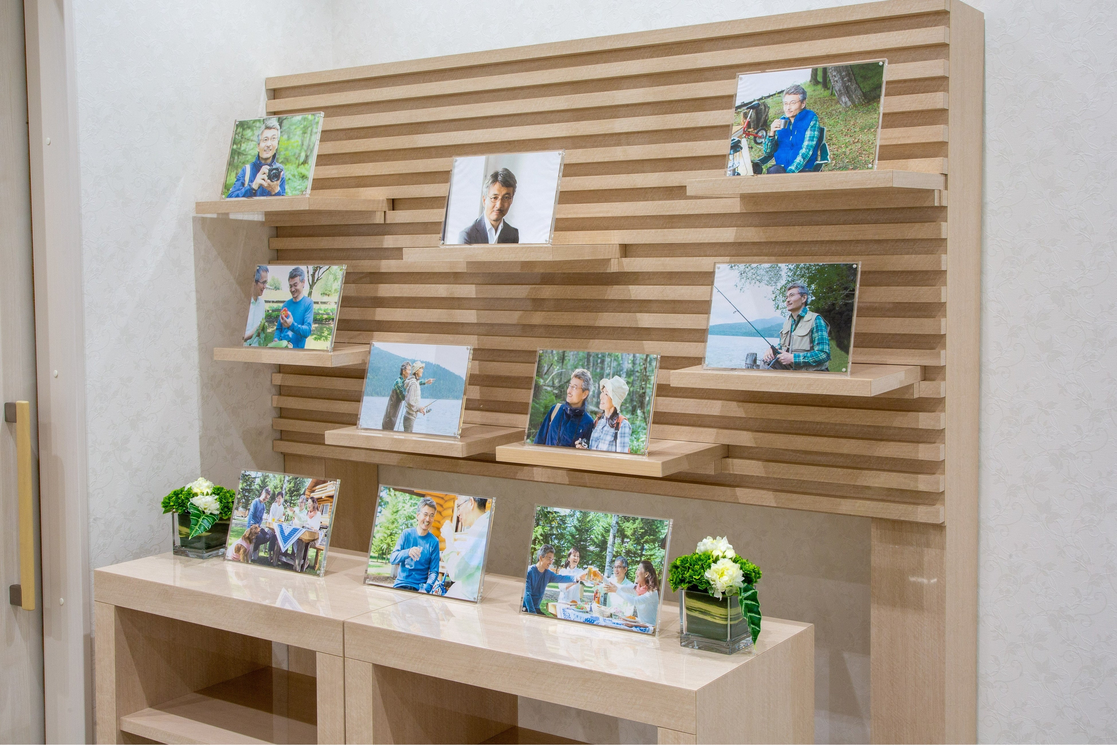 また、式場出入り口付近には、故人さまの愛用品や思い出の写真を飾ることができるメモリアルコーナーを設けております。