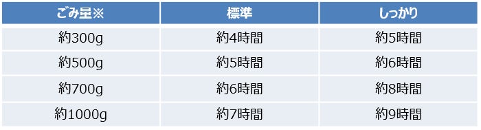 ※300gの野菜ごみを標準モードで乾燥させた場合。