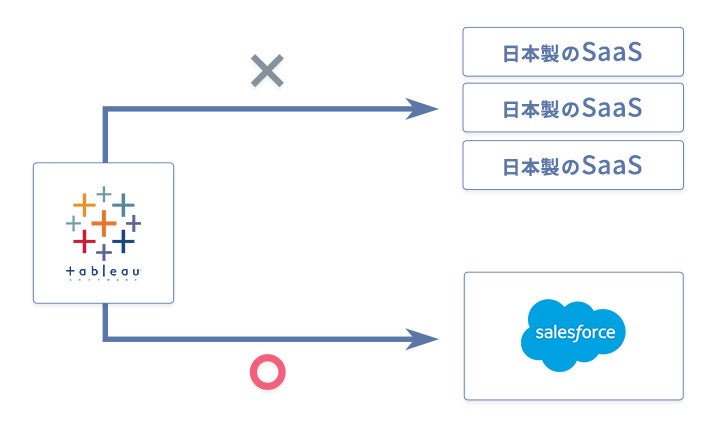 データ可視化ツールとして世界的に高いシェアを誇るTableauですが、日本固有のSaaSサービスへの対応が限られていました。これまで、日本製SaaSのデータを分析するには、一旦データウェアハウス(DWH)にデータを蓄積する必要があり、システム構築の複雑さやコストが障壁となっていました。