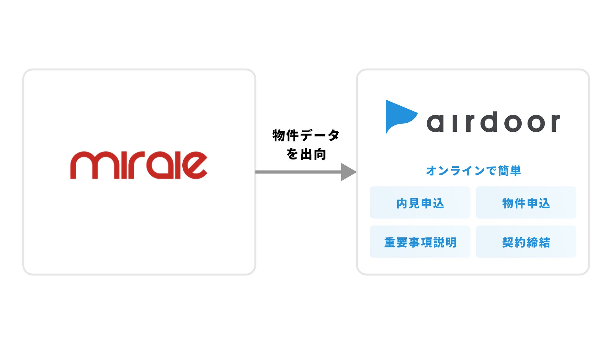 ダイレクト賃貸検索サービス「airdoor(エアドア)」と不動産仲介システム「みらいえ」が連携開始