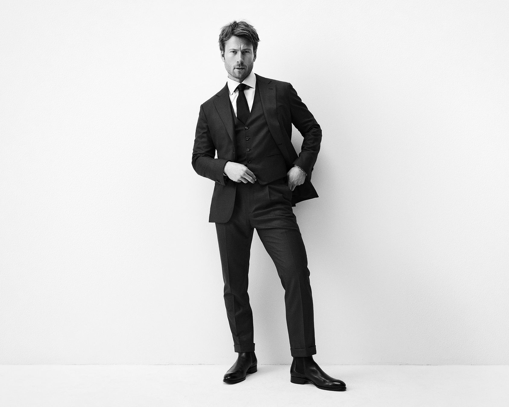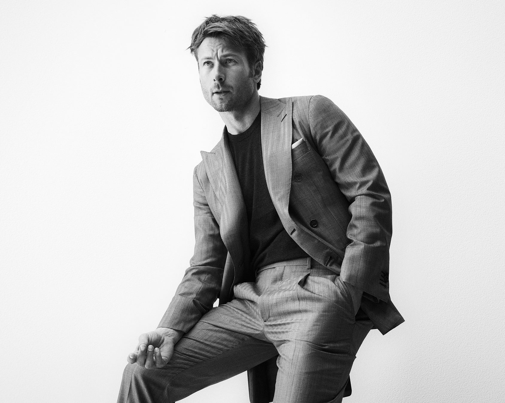 ブリオーニの友人であり、ハリウッドで最も多才な俳優の一人、映画 『トップガン マーヴェリック』、『ドリーム』、『エブリバディ・ウォンツ・サム!!』、『エクスペンダブルズ3』などに出演しているパウエルは、モダンでエレガント、カリスマ的で気鋭というブリオーニの男性像を見事に体現しています。
