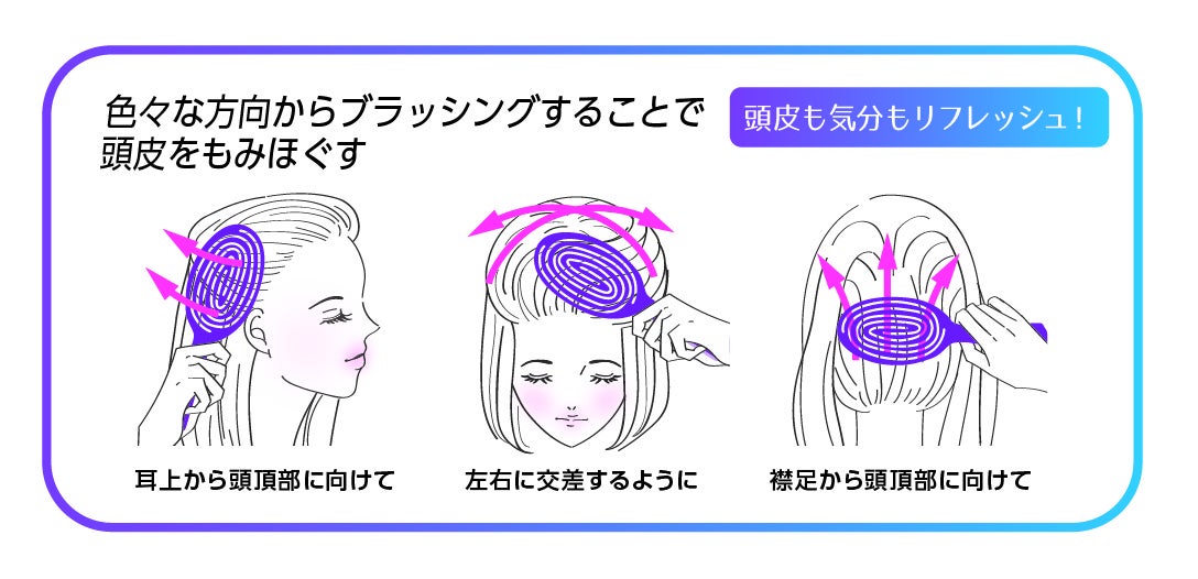 頭皮を心地よくもみほぐし、ずっとブラッシングしていたい、うっとりするようなとかし心地です。