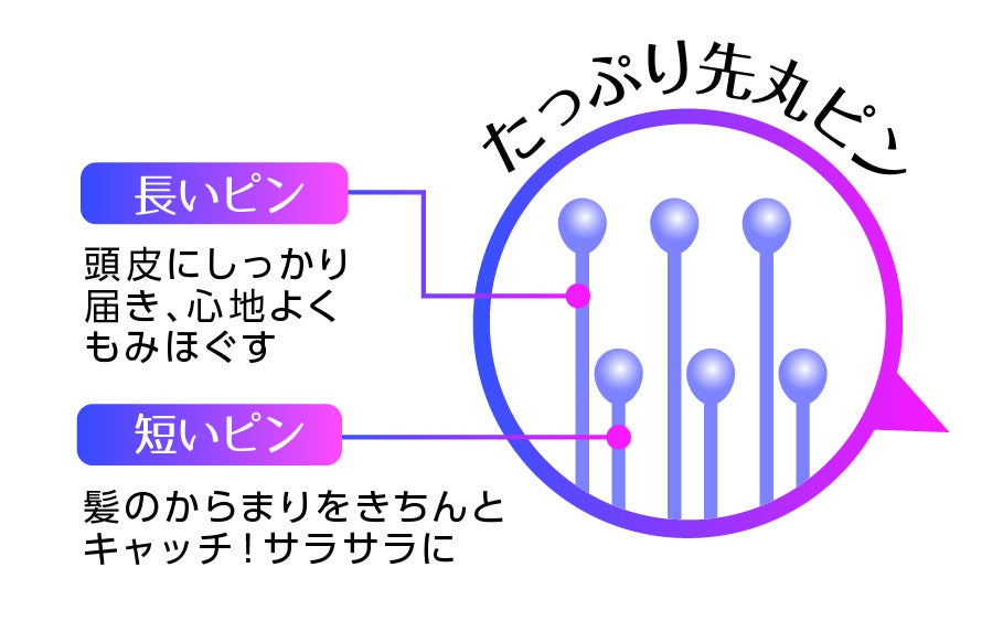 長いピン…頭皮にしっかり届き心地よくもみほぐします。