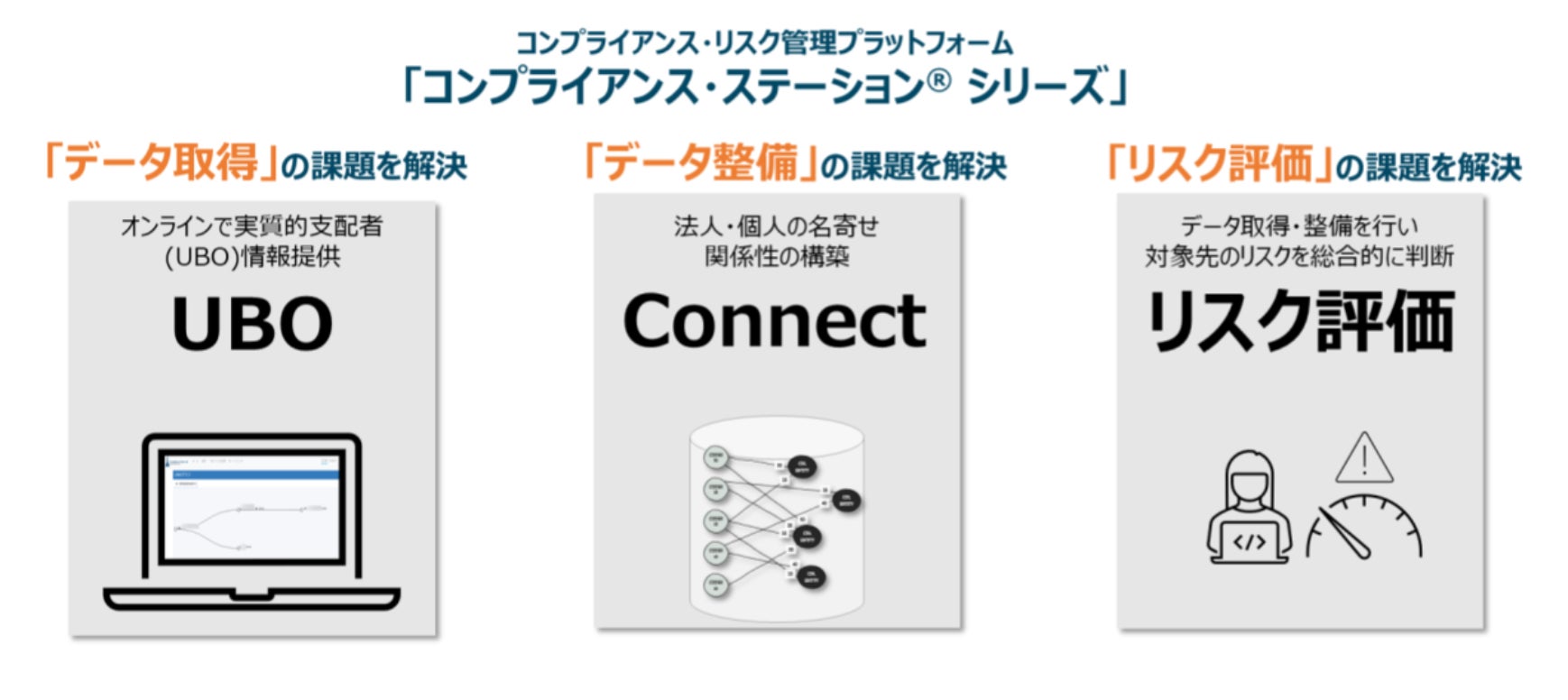 ・各種コンプライアンス・ステーション®️UBOサービスとの組合せで提供が可能です。