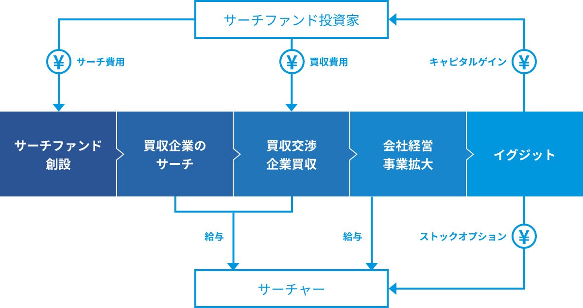 サーチファンドとは、人を軸とした事業承継に特化したバイアウトファンドの一形態であるとともに、事業承継をベースとした新しいアントレプレナーシップの形(Entrepreneurship Through Acquisition)です。企業経営を目指す意欲のある経営者候補「サーチャー」と、事業承継に課題を抱え、適切な承継先を探す中小企業を繋ぐビジネスモデルであり、米国で発祥し、近年日本においても新たな事業承継の手段の一つとして注目されています。