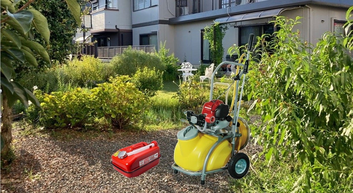 従来のエンジン式噴霧器はオイルやガソリンの準備が必要で、ガソリンの調達、