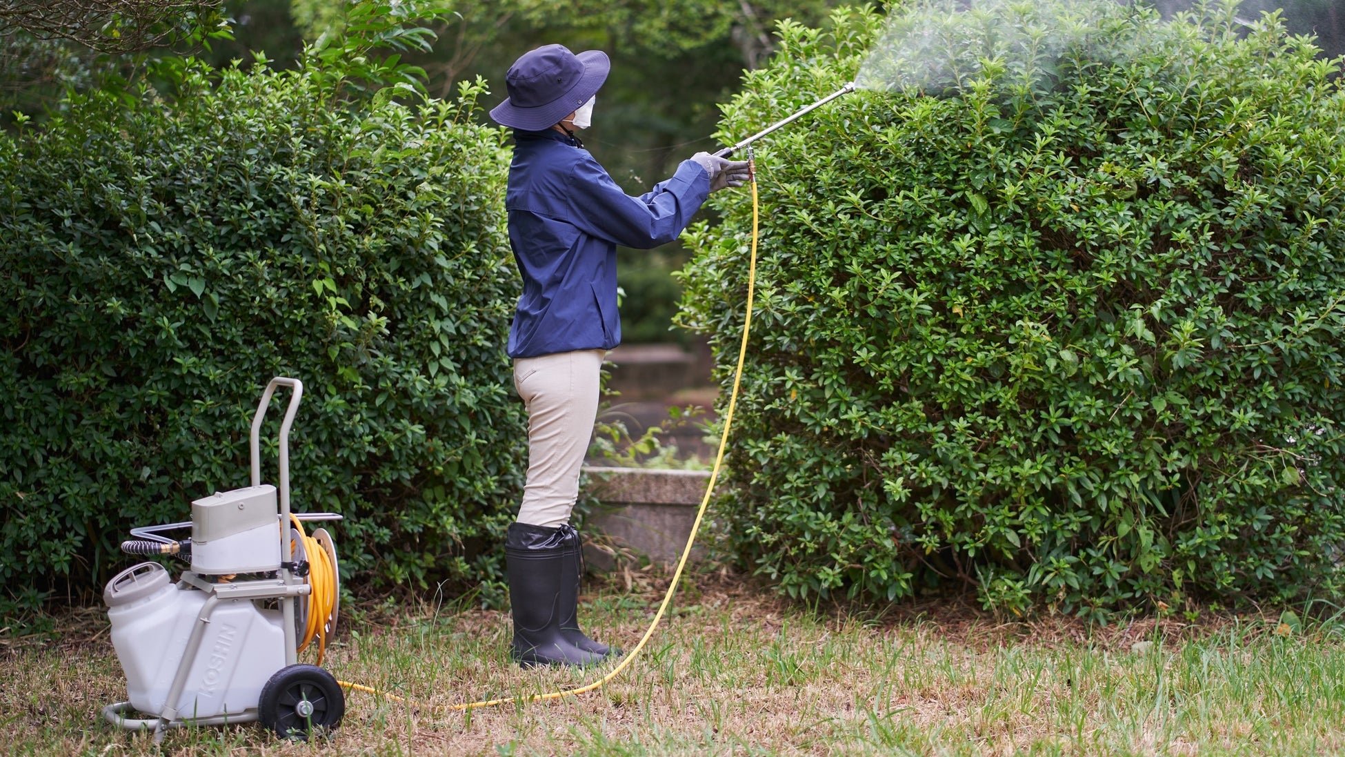 これまでエンジン式噴霧器での薬剤散布が当たり前でしたが、環境問題への高まりや