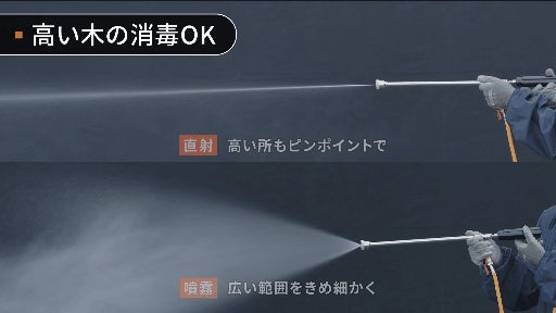 6月~7月にかけては、病害虫が発生しやすい時期。高い木や植物の病・害虫の消毒剤や除草剤・液肥の散布などに最適、従来のエンジン式噴霧器に変わる、充電式ハイパワー噴霧器を開発