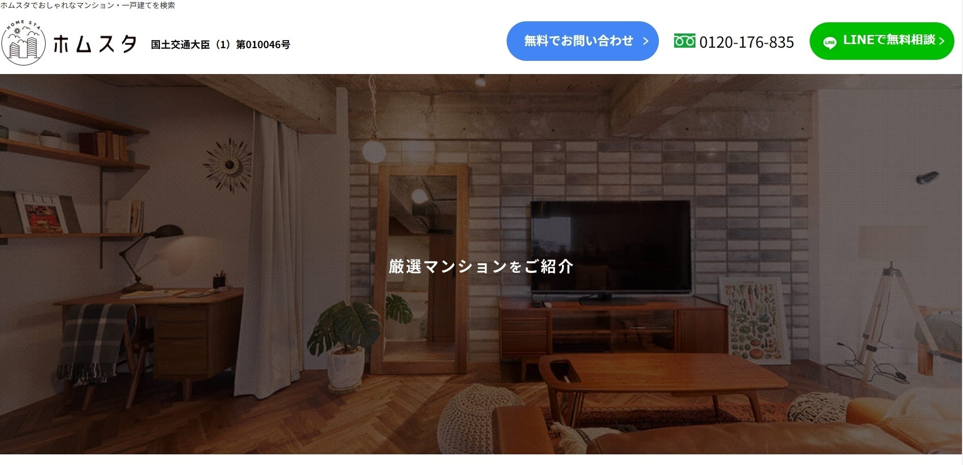 「ホムスタ」は15秒の動画で、物件の内覧のようすと周辺環境をご紹介するSNS連動型の物件紹介サービスです。中古マンション、新築・中古の一戸建てを中心にご紹介しています。