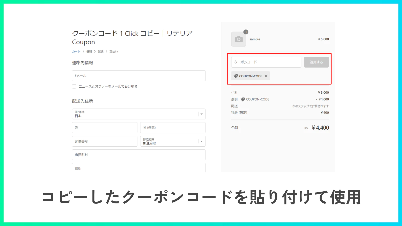 ■クーポンコード 1クリック コピー|リテリア Coupon | サービスページ