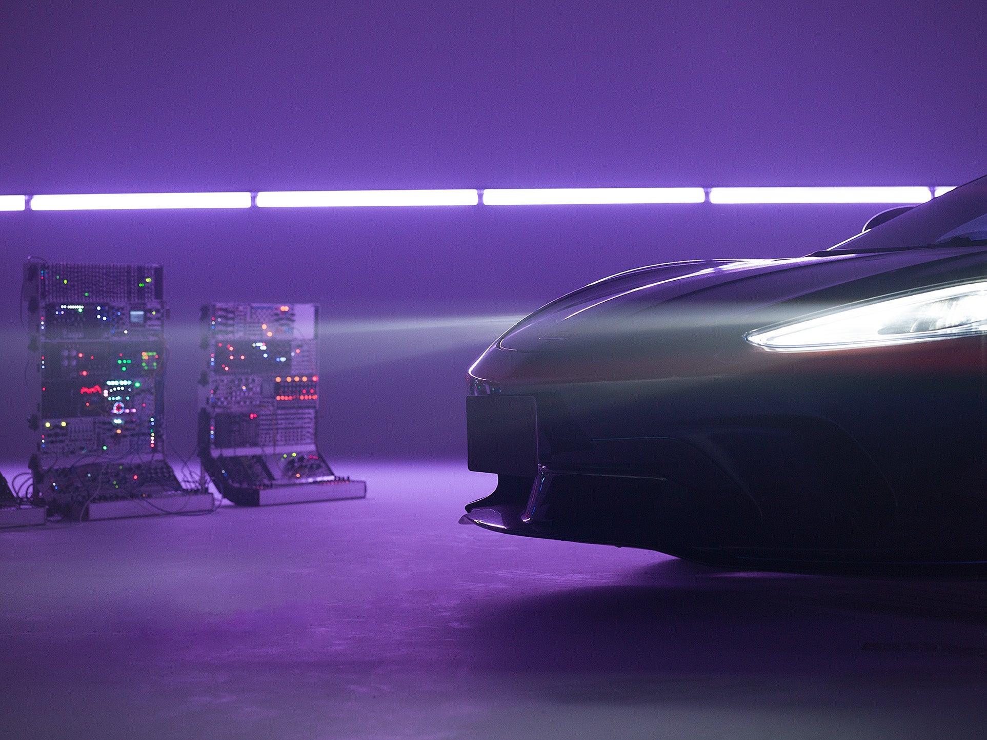 「無駄のない 彫刻のような美しいボディにTOKYOの光、そして日本の景色が写り込んでいくイメージを描きました。街の光と捉えることも、夕暮れや朝の空色と捉えることもできる、日本を走るGTだからこそ出会える色彩です。映像では モジュラーシンセサイザーから放たれる電気信号音や回る光の柱が現れる世界で、近未来的なTOKYOのガレージを表現しました。ここからどういう未来へ走り抜けていくのか、とても楽しみです」YOSHIROTTEN