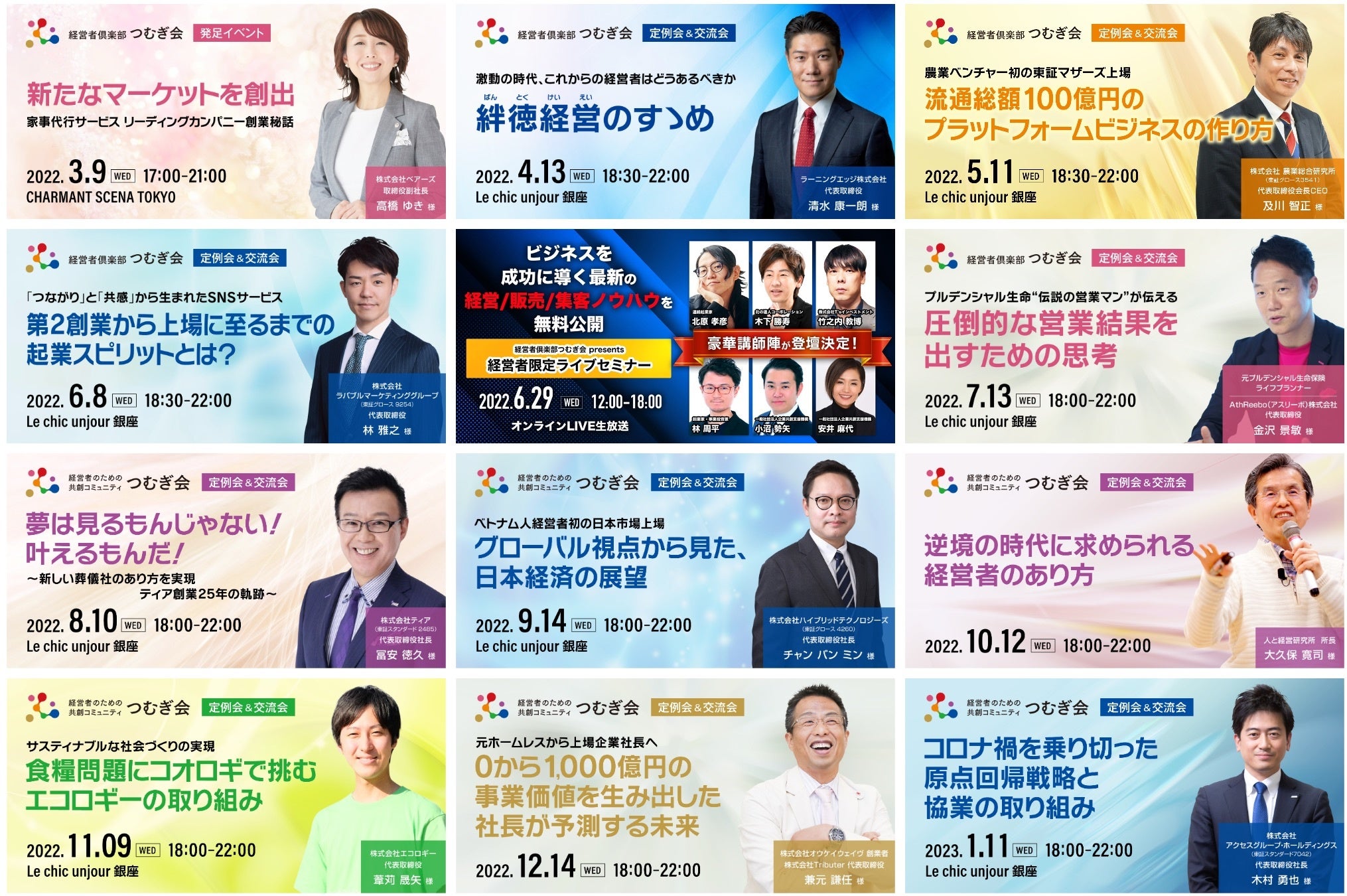 一般社団法人企業共創支援機構では、経営者のためのコミュニティ「つむぎ会」を2022年4月より運営しています。無料会員も含めると会員数は1000社を突破、経営課題に役立つセミナーやイベントを開催しています。