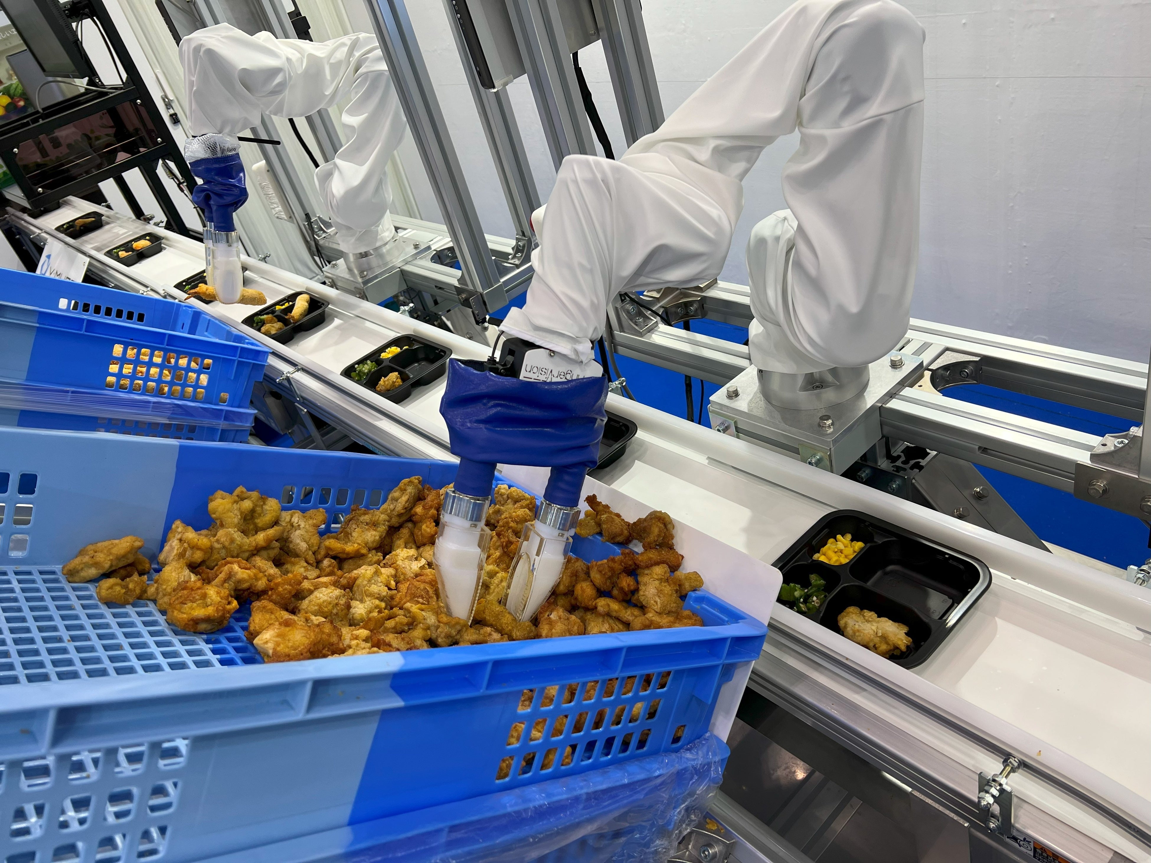 ・展示内容:弁当や総菜の盛付ラインで稼働する「多品種盛付ロボット」の特徴や使い方