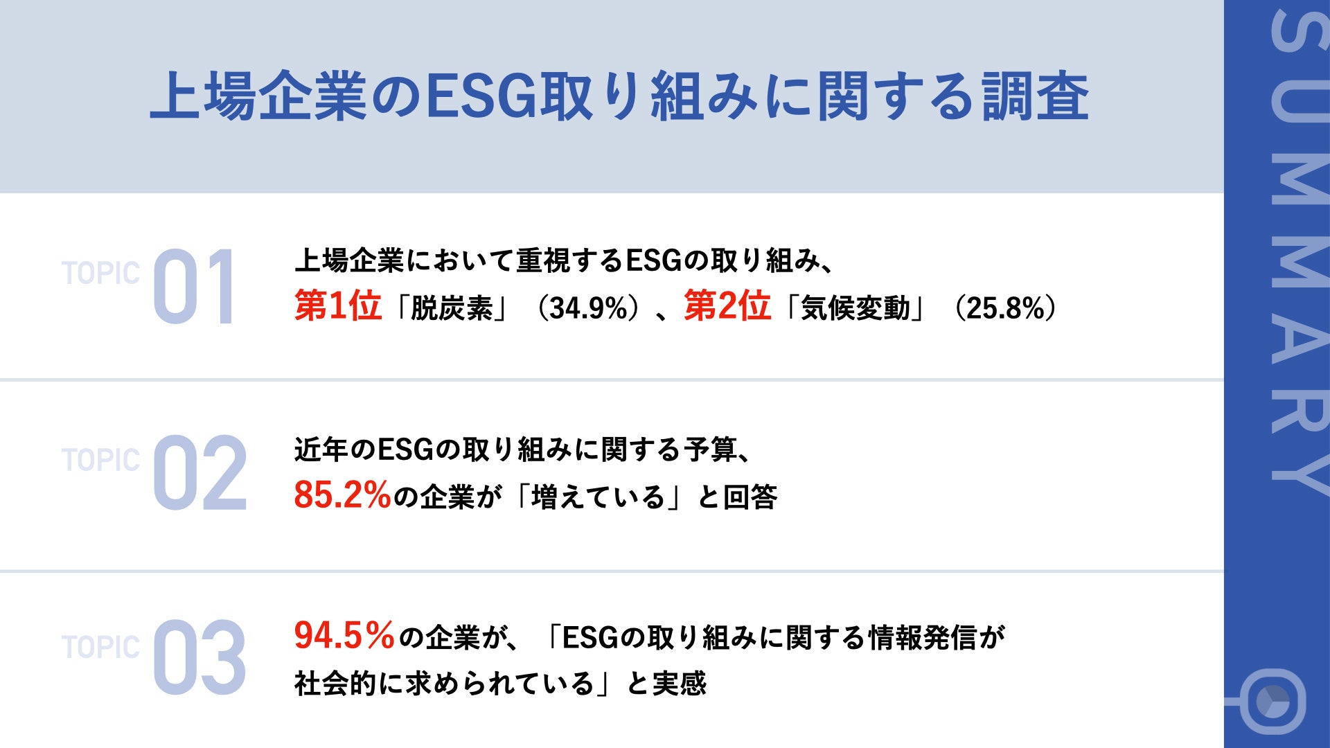 - 94.5%が「ESGの取り組みに関する情報発信が社会的に求められている」と実感