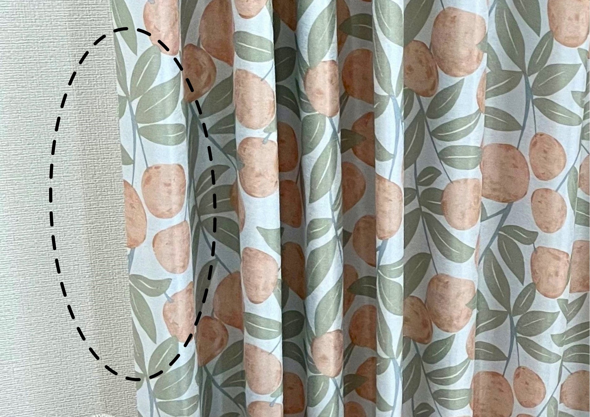 カーテンを開け閉めする際に握ることの多い「耳」部分には生地をダブルの巻き込みで縫製することで、ヨレやへたりに強いクオリティを保ちます。