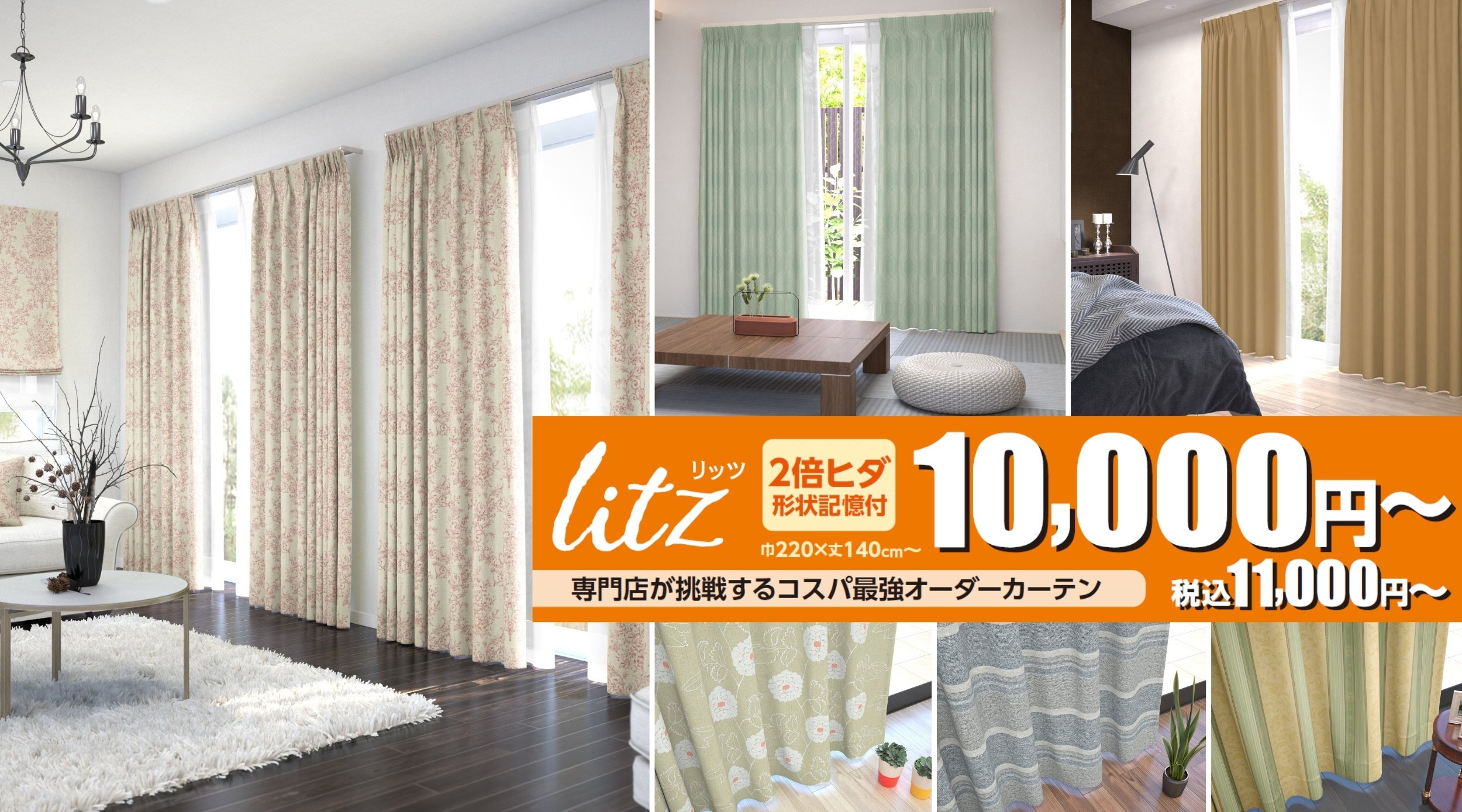 専門店ならではの高品質なオーダーカーテンを、クオリティはそのままに1窓1万円(税込1万1千円)でお作りできる点が「litz(リッツ)」の最大の特徴です。