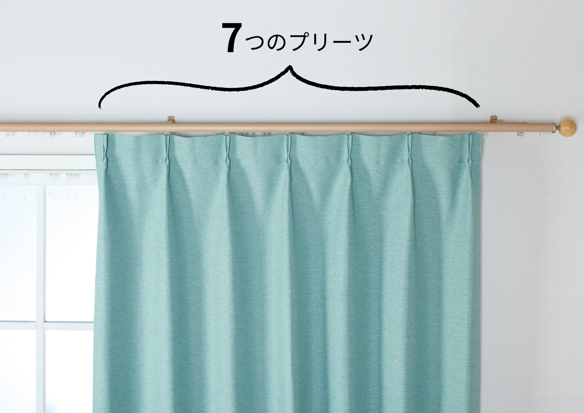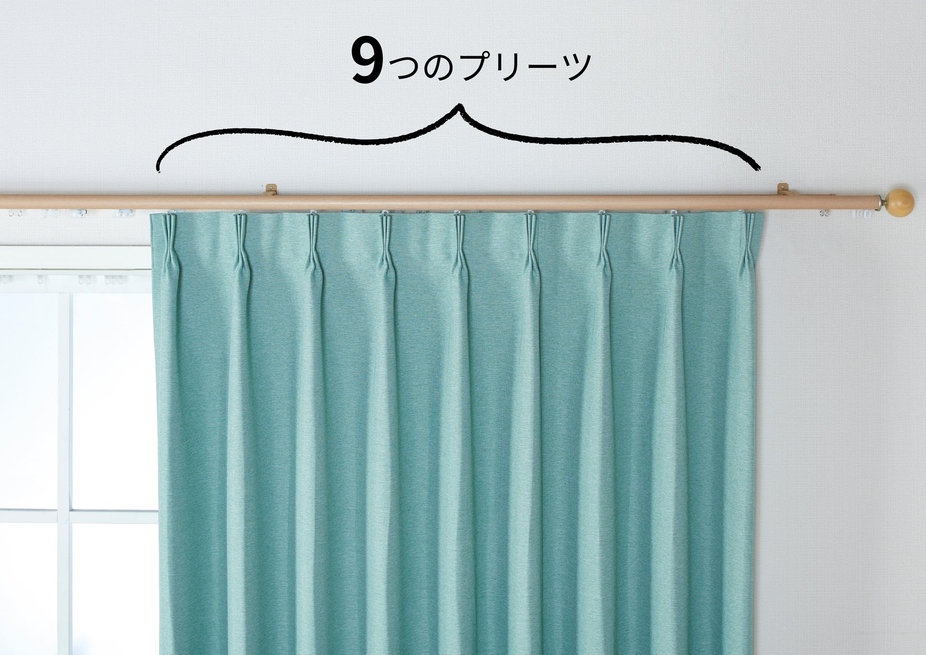 既製カーテンや他社のお手頃な価格帯のオーダーカーテンは基本、1窓・半間分(巾100㎝)のカーテンを製作する際に約150㎝の生地を使ってプリーツ(ヒダ)をとっていきますが、「litz(リッツ)」シリーズでは約200cm、2倍ヒダで生地をたっぷり使ってお作りします。