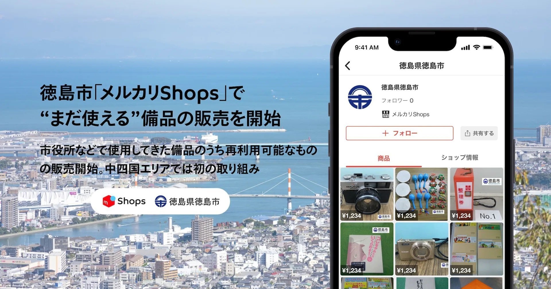 この度、連携事業の一環として、株式会社メルカリが提供するインターネットサービス「メルカリShop」を活用し、リユースの促進に向けて徳島市の不用物品など販売する徳島市「メルカリShops」をオープンしました。