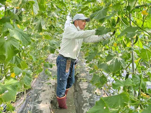 「子どもたちに安心して食べてもらえる野菜」をモットーに、地元堺でご家族力を合わせて野菜づくりに取り組んでいます。農園を運営する今野正章さんは、大阪府内の生産農家20名でつくる有志グループ「菜食ファーム」の代表も務めています。