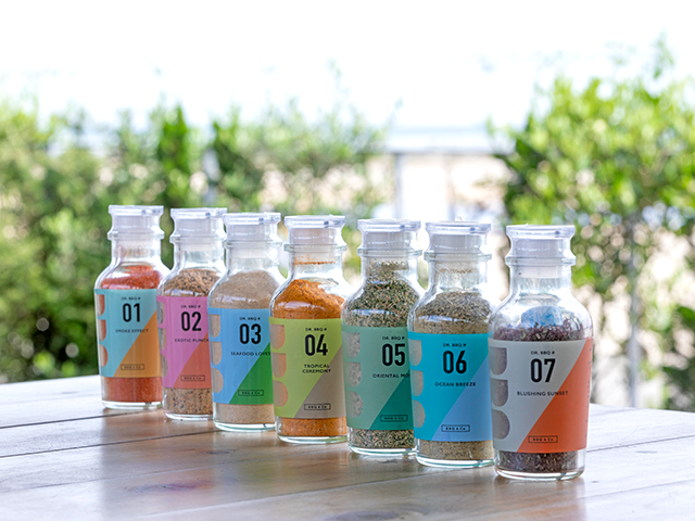 BBQ&Coが開発したオリジナルスパイス「DR.BBQ#」。全部で7種類あり、牛肉・豚肉・鶏肉・魚介類・野菜などそれぞれの食材がもつ旨味を最大限引き出すように計算してブレンドしています。普段のお料理のちょっとした隠し味としてもおススメです。