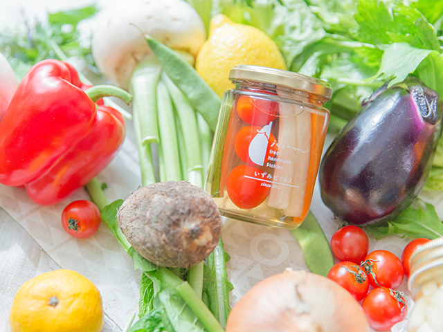 泉州野菜を扱う「いずみピクルス」。採れたて野菜のみずみずしい輝きをぎゅっと閉じ込め、見た目も美しく、メディアにもよく取り上げられています。ピクルスもドレッシングもBBQ料理との相性は抜群です。