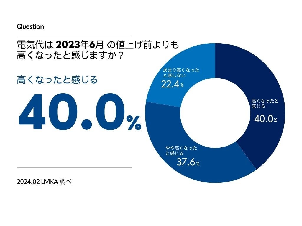 この値上げに伴い、約40%の方が「高く感じる」と回答し、また約38%が「やや高くなったと感じる」と回答しました。