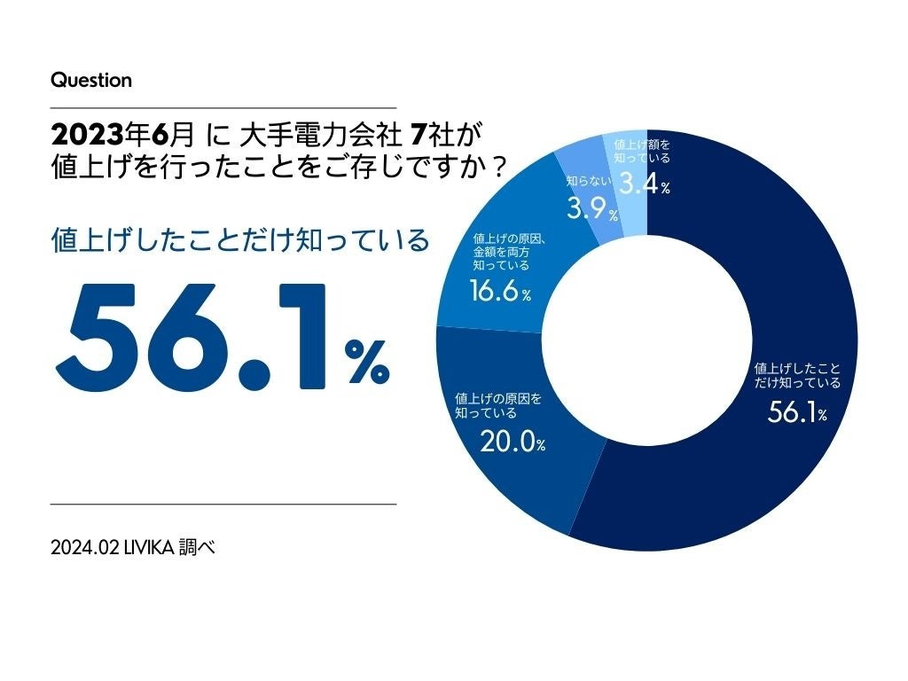・半数以上が2023年6月に大手電力会社7社が値上げしたことを知っている