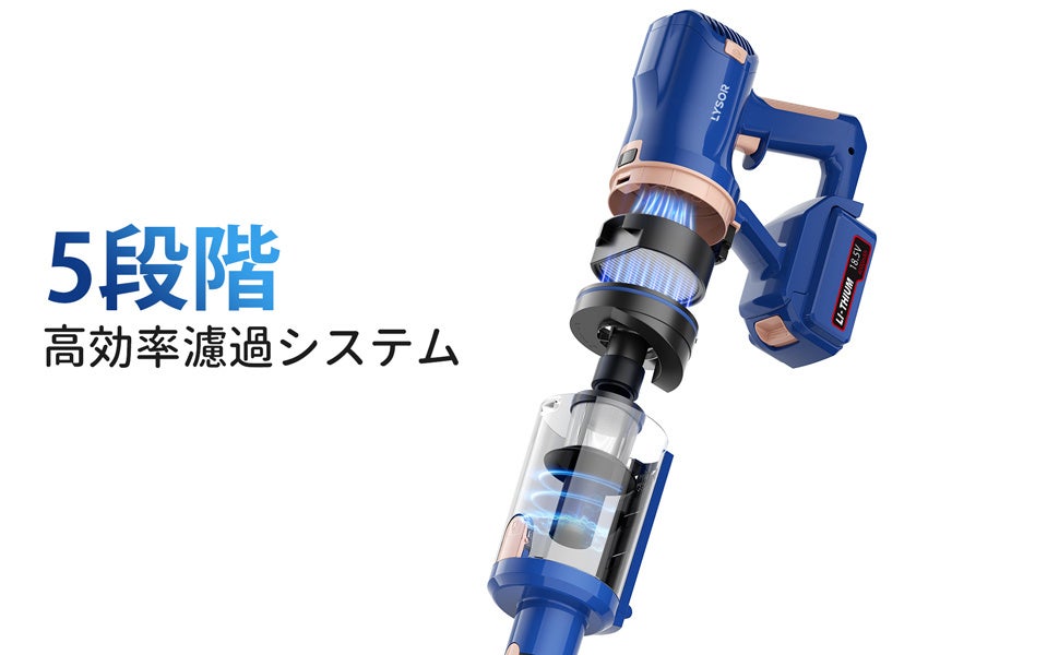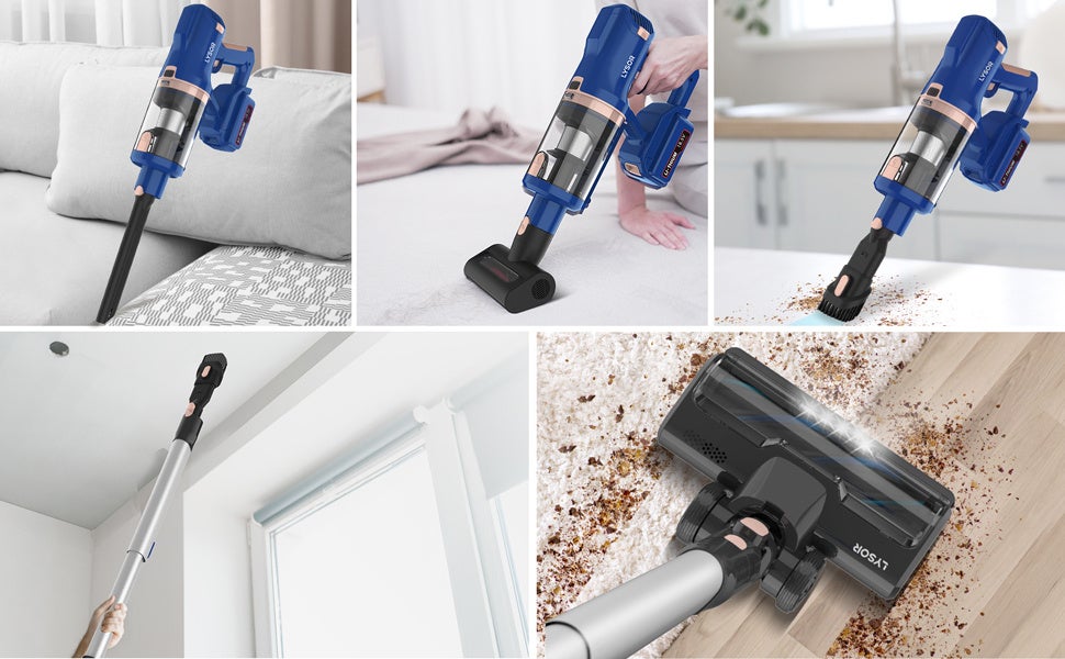 LYSOR V117コードレス掃除機は、2022年アップグレードされたブラシレスモーターとLEDディスプレイ画面を備えています。LEDディスプレイの中で、普通のバッテリーインジケーター、バッテリーレベル、パワーモードだけでなく、ローラー巻き付け警報とフィルター詰まり警報もあります。掃除機の使用はもっと簡単になります。