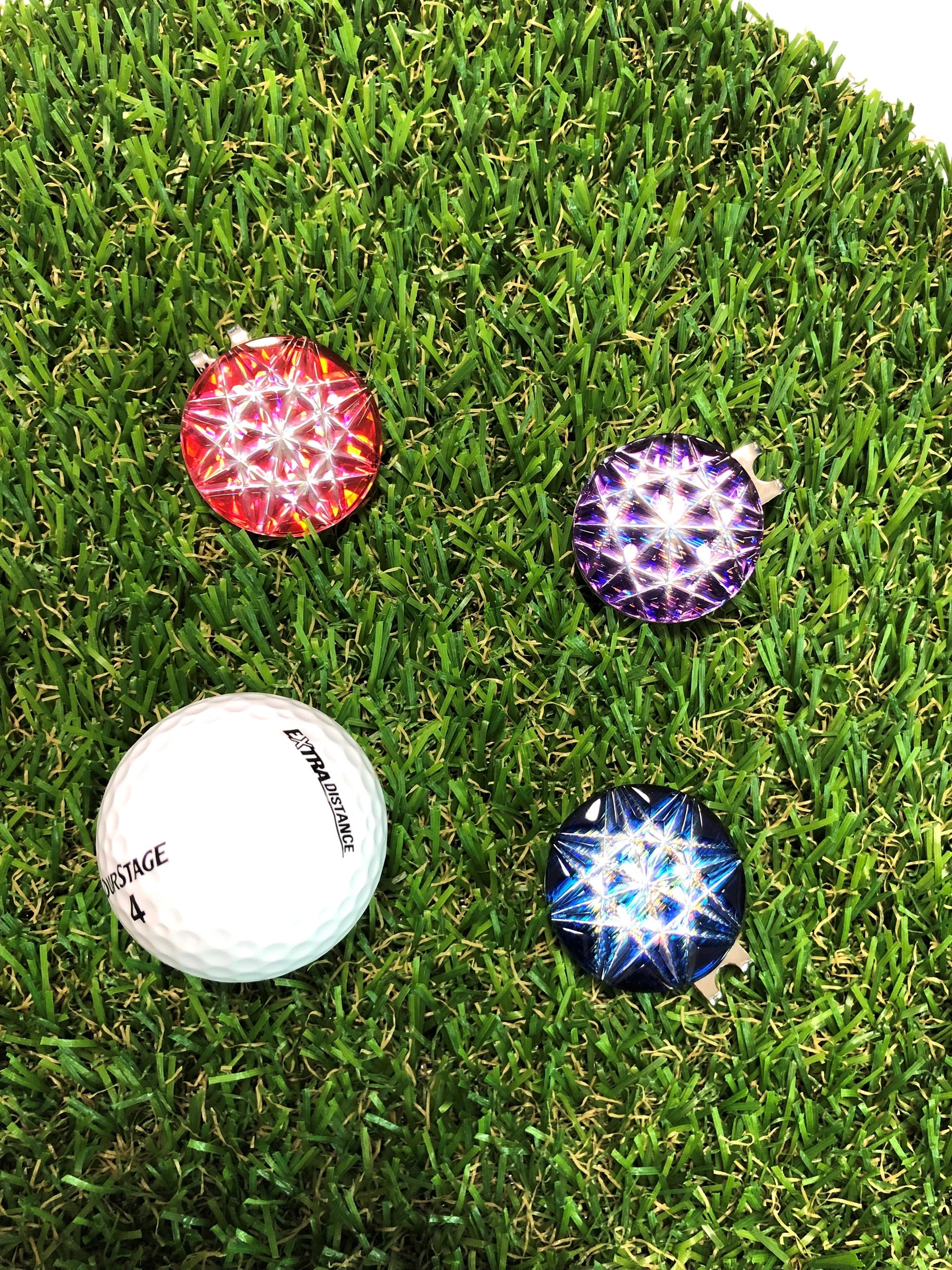 霧島市の返礼品には、薩摩切子のグラスや切子の伝統の技を生かしたオリジナルブランド「霧島切子」のグラスなどもあります。また、グリーン上でひときわ輝く薩摩切子のゴルフマーカーなどもあり、今回の限定切子柄ポロシャツとも相性抜群です。