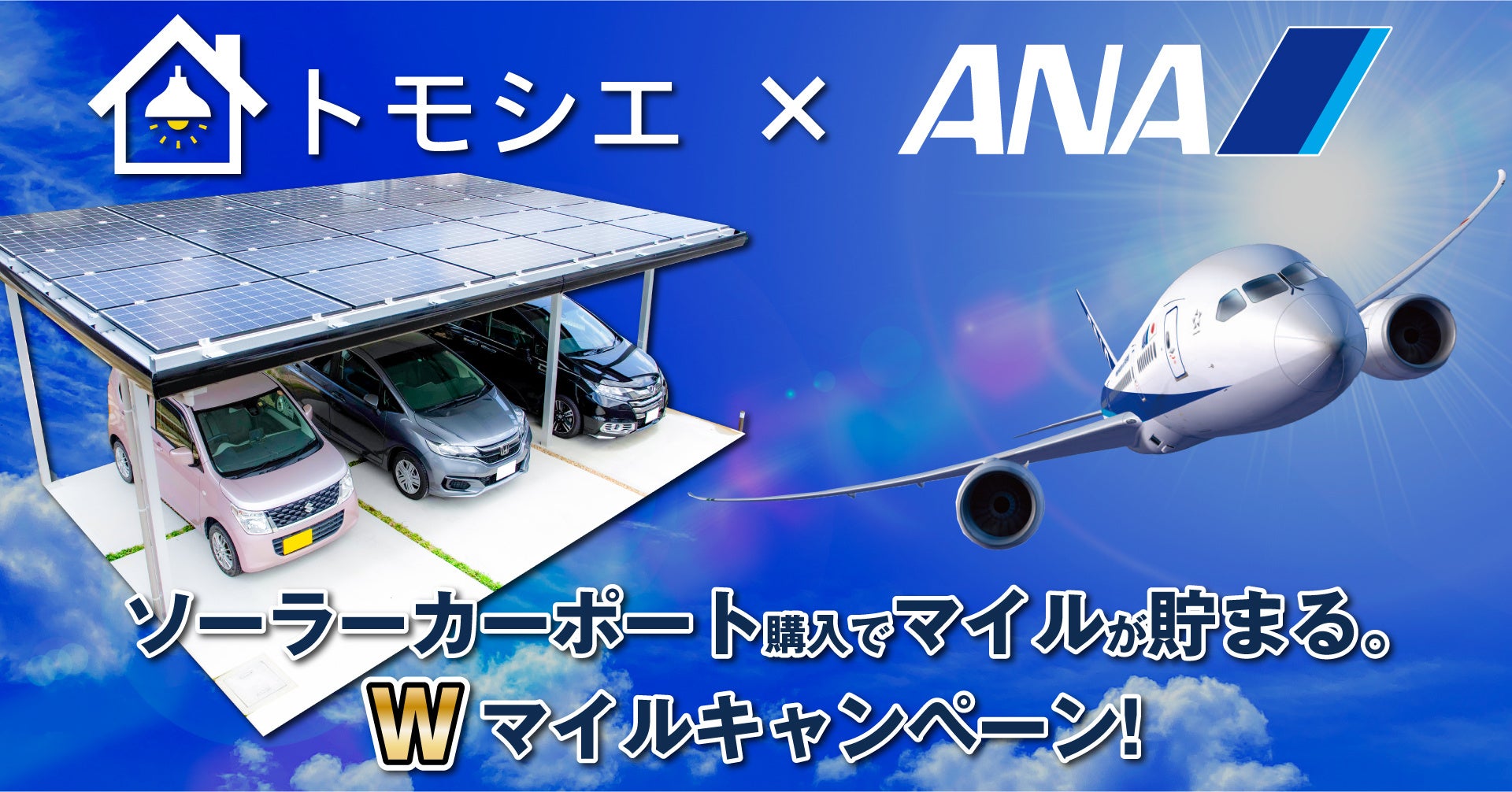 駐車スペース等を発電空間に変える「トモシエ 」 を運営する GC ストーリー株式会社 本社:東京都江東区、代表:西坂勇人)は、全日本空輸株式会社(本社:東京都港区、代表取締役社長:井上慎一、以下 ANA )と、 ANA マイレージクラブ(以下: AMC)会員様に向けた「 W マイルキャンペーン」を実施いたします。