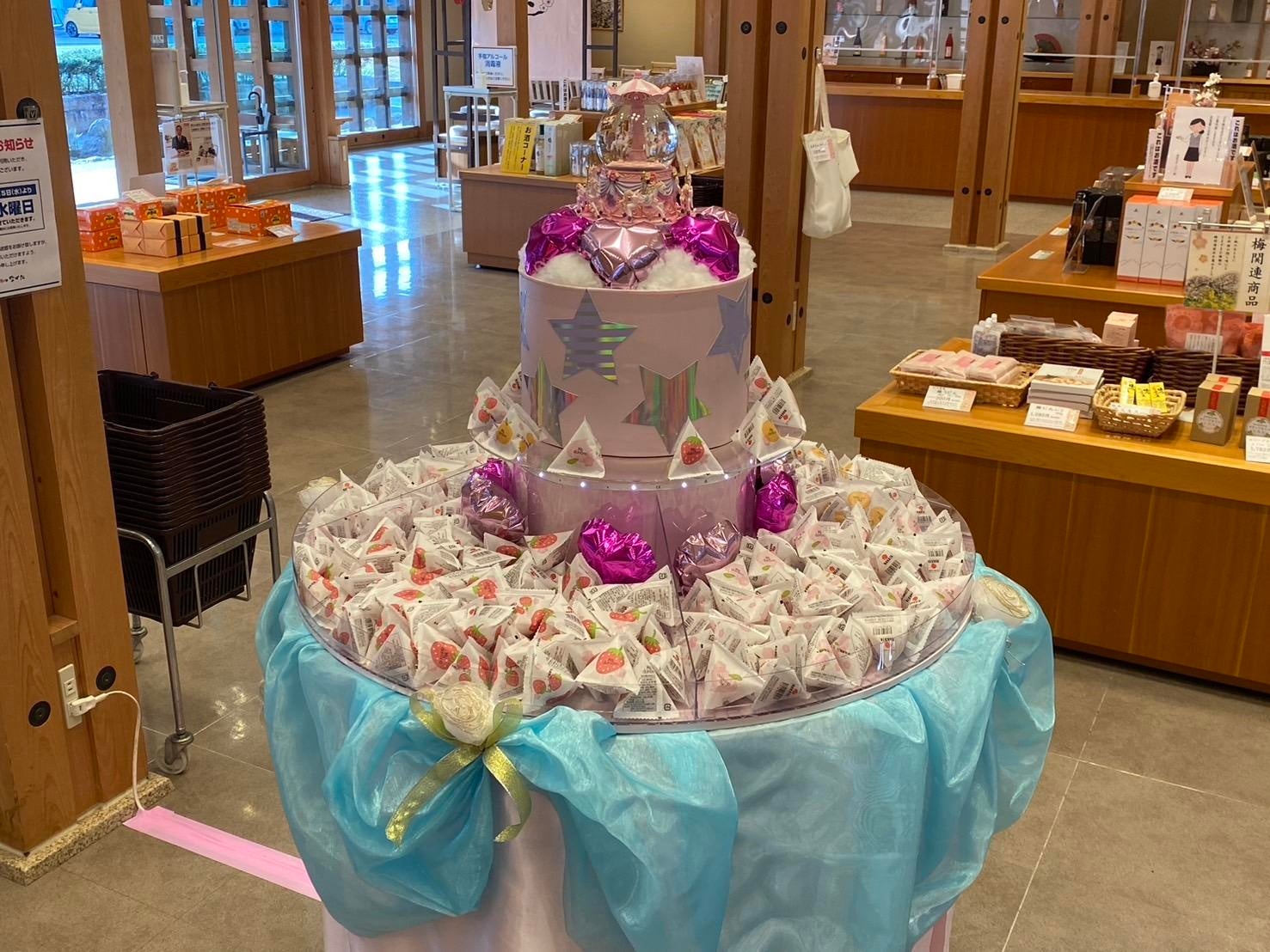 そこで今回は、その「梅damono」シリーズの梅干し3種類(もも・みかん・いちご)を、「TGC 和歌山 2024」で使用した「梅damonoタワー」に並べ、本社敷地内にある直売店で一般公開いたします。